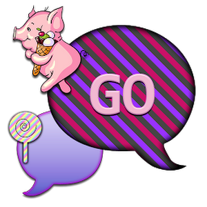 This go sms theme is all about candy, there is a cute pig carrying and cone full of candy, he is in the in box. The chat room has bright pink and purple strips and the pop up box is lavender polka dots with a lollipop in the corner.